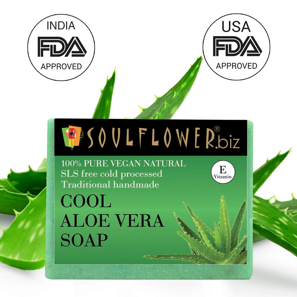 - A safe and secure soap for your skin: soulflower cool aloe vera soap is 100 percent pure, natural and cold processed, which is also free from sls, chemicals, synthetic colour or fragrance; Cut the soulflower cool aloe vera soap into two pieces, store unused piece in a cool dry place